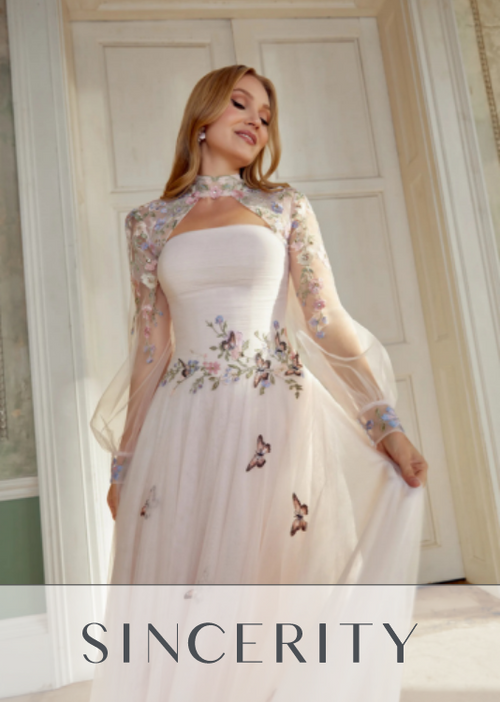 Your wedding dress shopping appointment begins with a personal stylist to help you create your try on selection. Next, you enter our spacious dressing rooms that are all yours for 1.5 hours. Finally, you join your bride tribe at your very own viewing mirror where the magic happens. Because every bride deserves to have a “YES” moment.